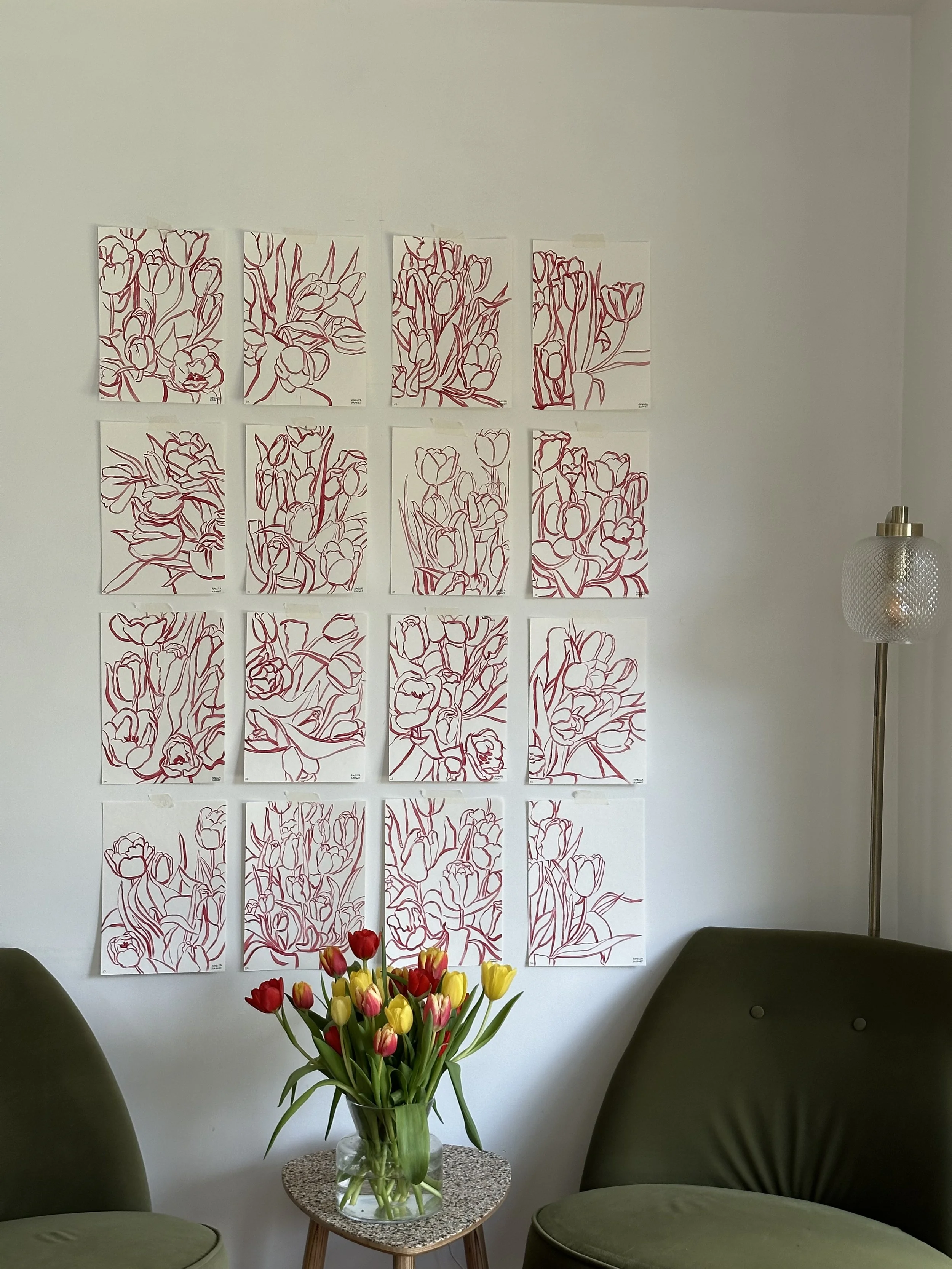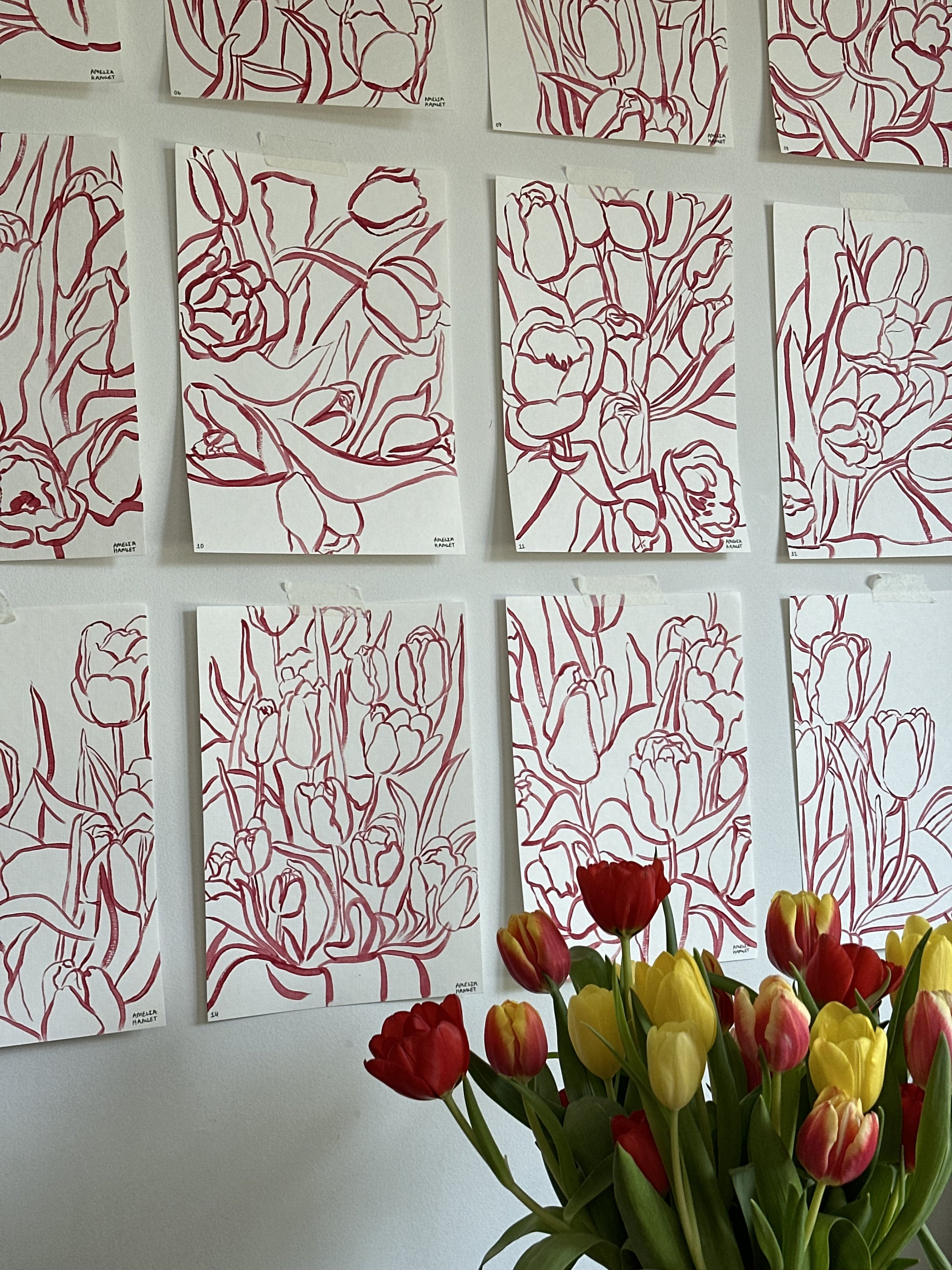 a small collection of 16 original paintings, all inspired by the same bunch of tulips and developed from my earlier tulip studies.